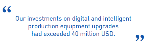 Following our IPO in October 2016, the investments on digital and intelligent production equipment upgrades had exceeded $40 million. We have created a vertically integrated bearing production chain which consists of tubing, forging, turning, heat treating, grinding, and assembly. We accomplished real digital production systems consisting of automatic production, automatic detection, and on-line error prevention. We are actively upgrading to intelligent production management system. During the first half of this year, the production management MES project was completed to realize real-time monitoring of production data and quality data, as well as traceability of the entire manufacturing process of materials; which improved production efficiency and ensured the stability and reliability of the quality of our products.
